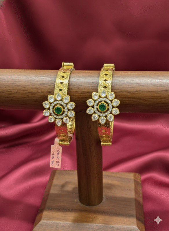 Exquisite Gold-Plated Emerald & Stone Bangles